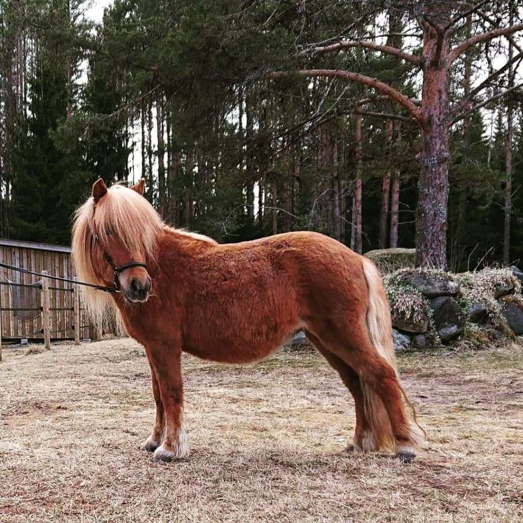 Kiara föddes här hos oss. Hon kom som en överraskning då jag tidigare samma morgon varit ute och kollat Grace. Hon va lugn och stod med sitt hö så jag gick in igen för att göra frukost till barnen. Mitt i våffelfixet kom grannarna inspringandes och frågade om jag visste om att det stod ett föl i hagen.